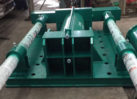 液壓推鋼機采用液壓缸,通過活塞桿帶動推頭推移軋件的推鋼機,主要由液壓油缸、液壓泵站、平衡推桿及底座等組成。